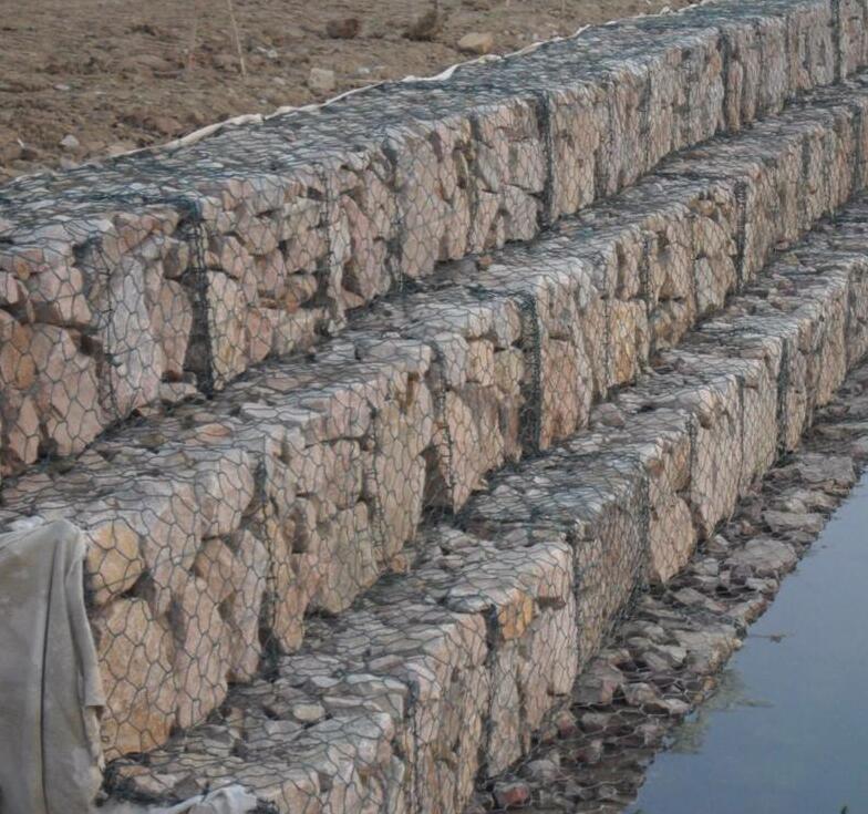疊砌石籠網(wǎng)又叫石籠網(wǎng)箱,格賓網(wǎng)箱,鉛絲石籠網(wǎng),固賓籠綠濱墊. 石籠網(wǎng)主要用于河道整治工程,河道基礎(chǔ)加固工程,抗沖刷工程,防洪救災(zāi)等水利工程和土木工程. 石籠網(wǎng)優(yōu)勢(shì): 1. 良好的柔性結(jié)構(gòu),可以承受大范圍的變形而仍不塌陷. 2. 生態(tài)環(huán)保,在工程施工好后,用土蓋好,在表面撒上一層草籽,等明年會(huì)形成一層天然的綠色草坪,并且省去了綠化的費(fèi)用. 3. .施工簡(jiǎn)便,無(wú)需特殊的技術(shù),只要將籠子綁扎好,再在里面裝好石頭即可. 4. 防腐蝕能力強(qiáng),在PH值6.5-7的時(shí)候可以使用70年不生銹 5. 運(yùn)輸方便,運(yùn)輸時(shí)可將石籠網(wǎng)箱像紙箱子一樣折疊運(yùn)輸. 6. 石籠網(wǎng)箱規(guī)格: 石籠網(wǎng)箱尺寸:2m*1m*1m,3m*1m*1m,4m*1m*1m,5m*1m*1m,4m*2m*1m..........(可加工定做) 7. 石籠網(wǎng)網(wǎng)孔尺寸:60mm*80mm,80mm*100mm,100mm*120mm,120mm*150mm,130mm*160mm,150mm*150mm,180mm*180mm,200mm*200mm 8. 石籠網(wǎng)絲徑:絲徑分為網(wǎng)絲直徑,邊絲直徑,綁扎絲直徑 9. 石籠網(wǎng)網(wǎng)絲直徑:2.0mm-4.0mm 10. 石籠網(wǎng)邊絲直徑:邊絲直徑一般大于網(wǎng)絲直徑0.5mm-1mm 11. 石籠網(wǎng)綁絲直徑:2.0mm-2.2mm