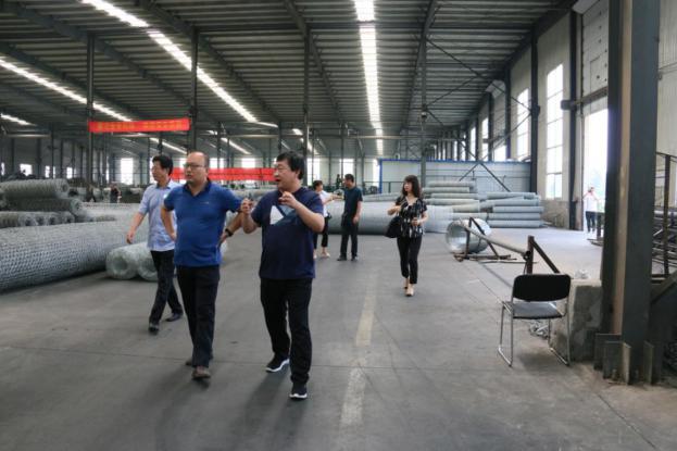 在公司車間,尚總向孫主任一行詳細介紹了石籠網的生產工藝流程,公司對原有的生產工藝進行改進創(chuàng)新,以及石籠網在防洪防汛應用中起到的河道邊坡防護防沖刷作用.隨后,孫主任又詢問了關于石籠網編織過程中的一些問題,并對公司科技創(chuàng)新項目取得的成就和投入力度表示贊賞,對公司以后的發(fā)展充滿信心和期望,并鼓勵我司積極參與其他的對外交流活動,孫主任表示,對外交流中心也會加強對項目的篩選及對優(yōu)質項目的扶持,加強優(yōu)秀企業(yè)對外品牌輸出力度,助力企業(yè)朝更好的方向發(fā)展.