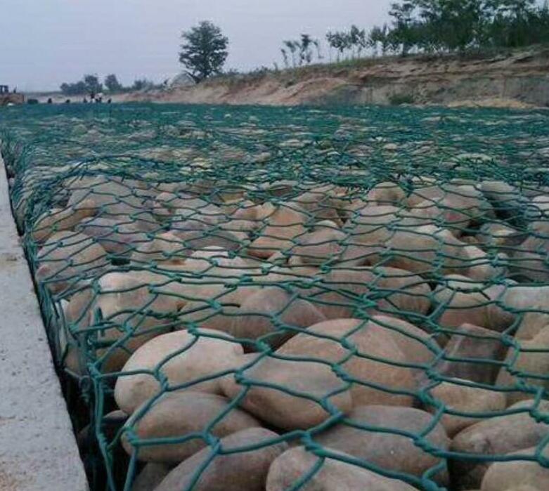 格賓網(wǎng)石籠防護(hù)技術(shù)是指由專用機(jī)械將涂塑或不涂塑(PVC樹脂)的熱鍍鋅鋁低碳鋼絲編織成格賓網(wǎng)片,然后將其裁 剪、拼裝成符合設(shè)計(jì)要求的格賓網(wǎng)箱籠,用塊石等填滿后用于堤防、河岸、路基的防護(hù)。格賓網(wǎng)石籠防護(hù)屬于柔性防護(hù)工程,有利于保護(hù)河道、堤防岸坡的安全穩(wěn) 定,可實(shí)現(xiàn)水土自然交換,增強(qiáng)水體自凈能力,同時(shí)又可以實(shí)現(xiàn)坡面植被綠化,使工程建筑與生態(tài)環(huán)境保護(hù)達(dá)到有機(jī)結(jié)合。