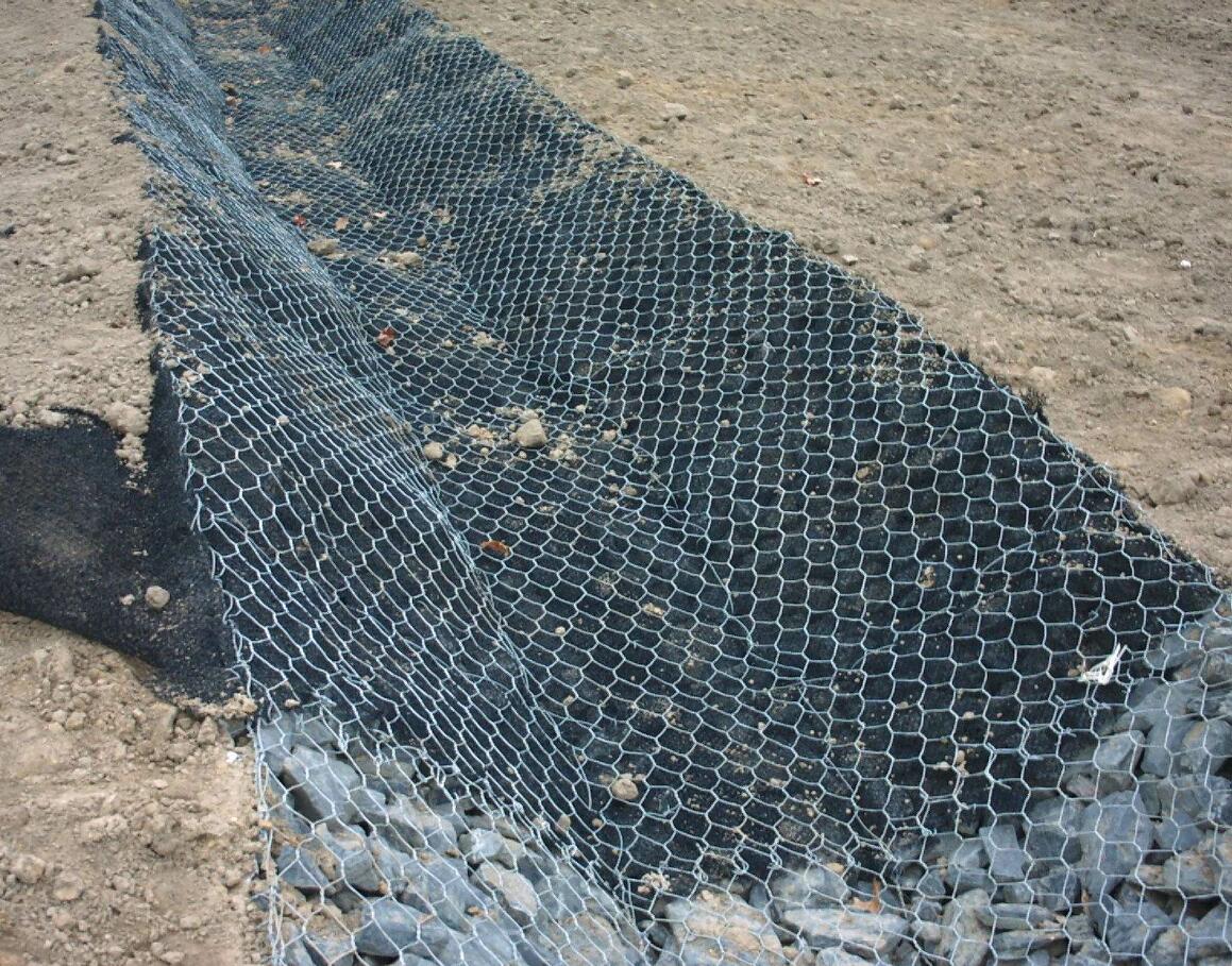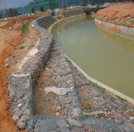鉛絲石籠網(wǎng)箱箱在施工現(xiàn)場(chǎng)經(jīng)石頭填充,構(gòu)成具有柔性、透水性及整體性的結(jié)構(gòu), 如擋墻、河道襯砌、堰等支擋的防沖蝕工程. 鉛絲石籠網(wǎng)箱箱由間隔1米的隔板(雙絞合六邊形金屬網(wǎng)片)分成若干單元格,為了加強(qiáng)鉛絲石籠網(wǎng)箱箱結(jié)構(gòu)的強(qiáng)度, 所有的面網(wǎng)板邊端均采用直徑更粗的鋼絲。控制和引導(dǎo)河流及洪水泄洪壩、導(dǎo)流壩巖崩防護(hù)、防止水土流失、大橋保護(hù)、固土結(jié)構(gòu)、海濱防御工程、港口工程和擋土墻道路防護(hù).